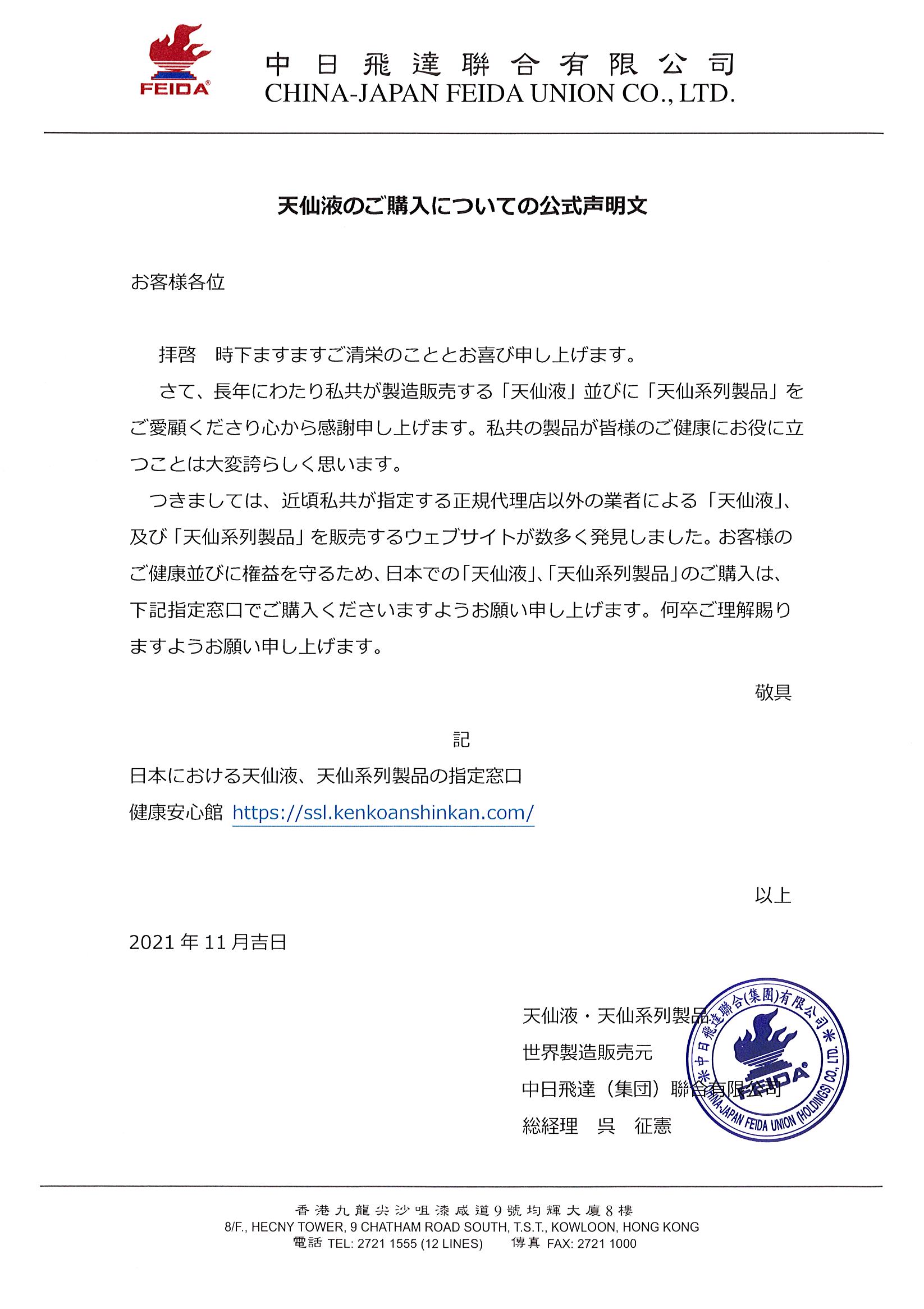關於購買天仙液之官方聲名